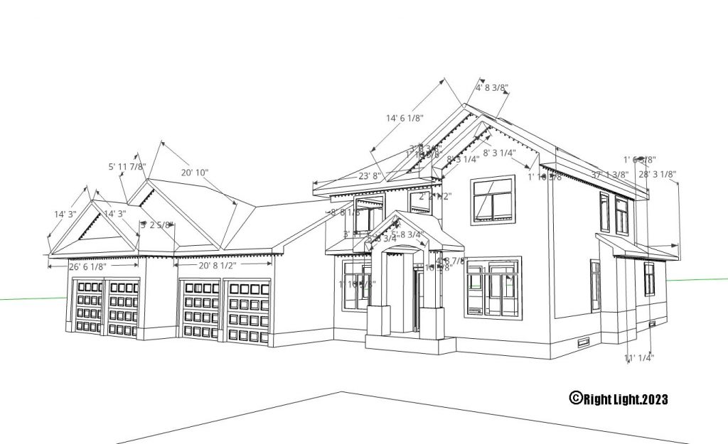 Technically, you only need to measure the lengths where you plan to install the LEDs, as well as the distance from your chosen power receptacle to the first LED. However, it’s helpful to also know other dimensions, such as heights and diagonals. This additional information ensures you can access specific points with a ladder or, if needed, verify that a lift arm can reach those points from the driveway.